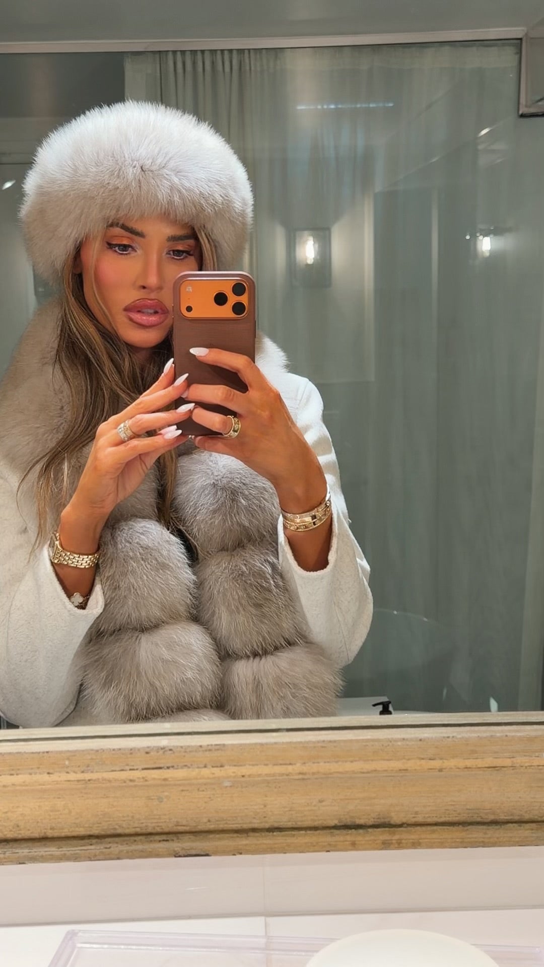 Fur hair band in Etoupe