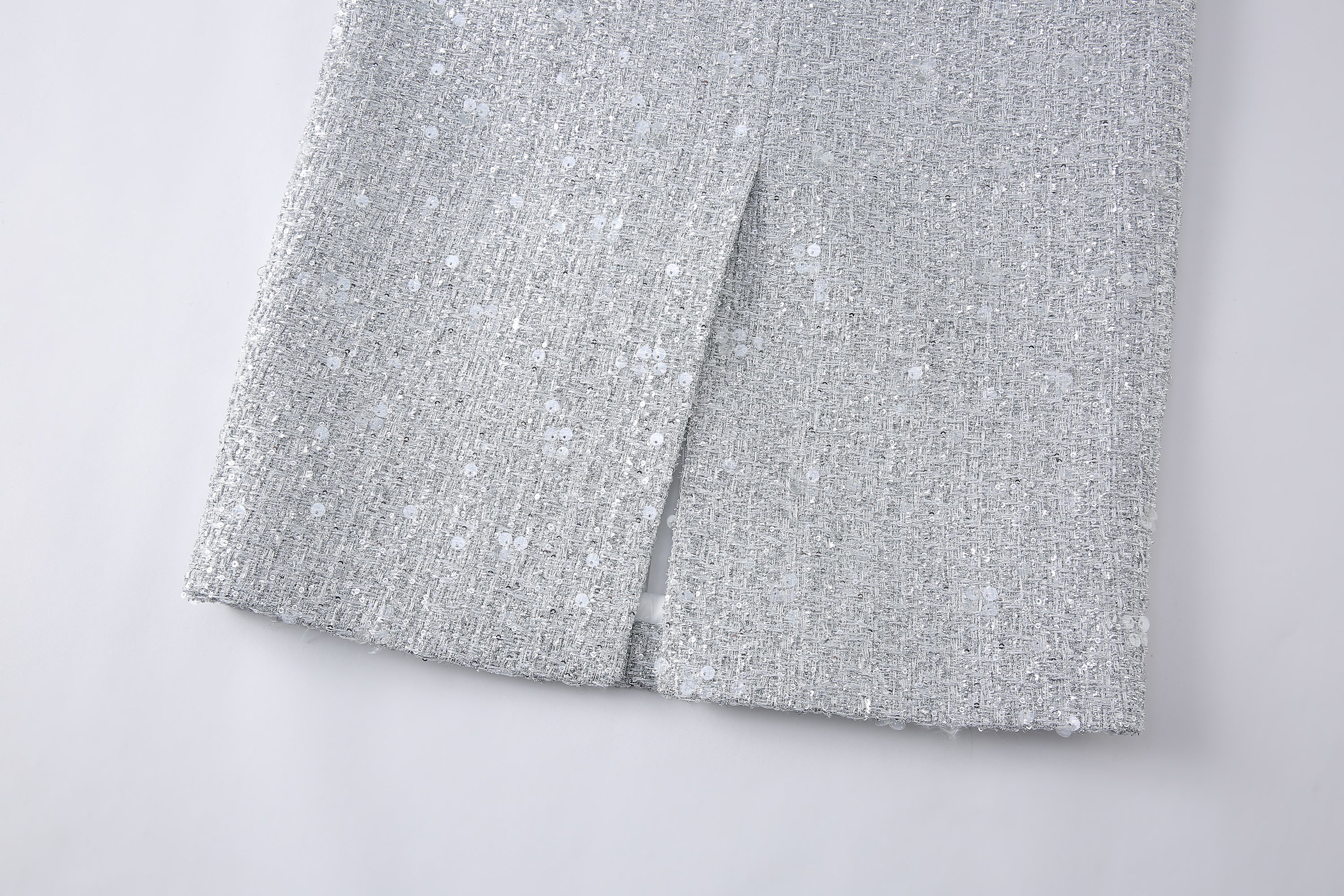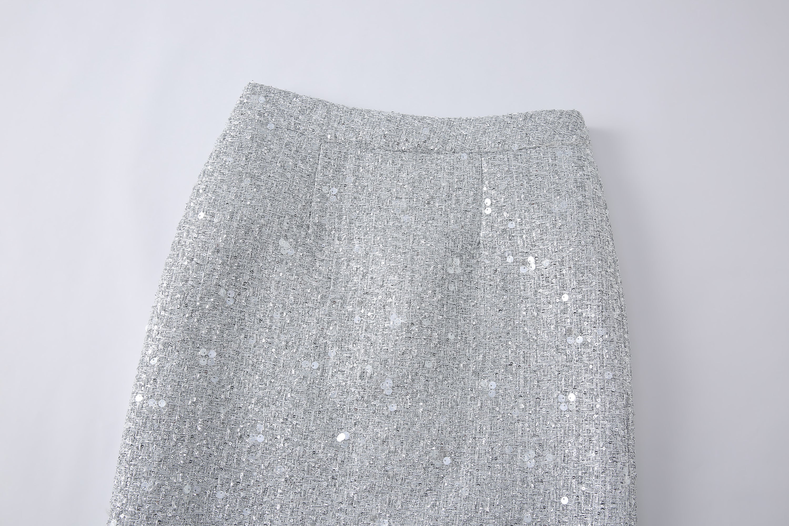 Adelle skirt in silver tweed glittery fabric& feminine design.