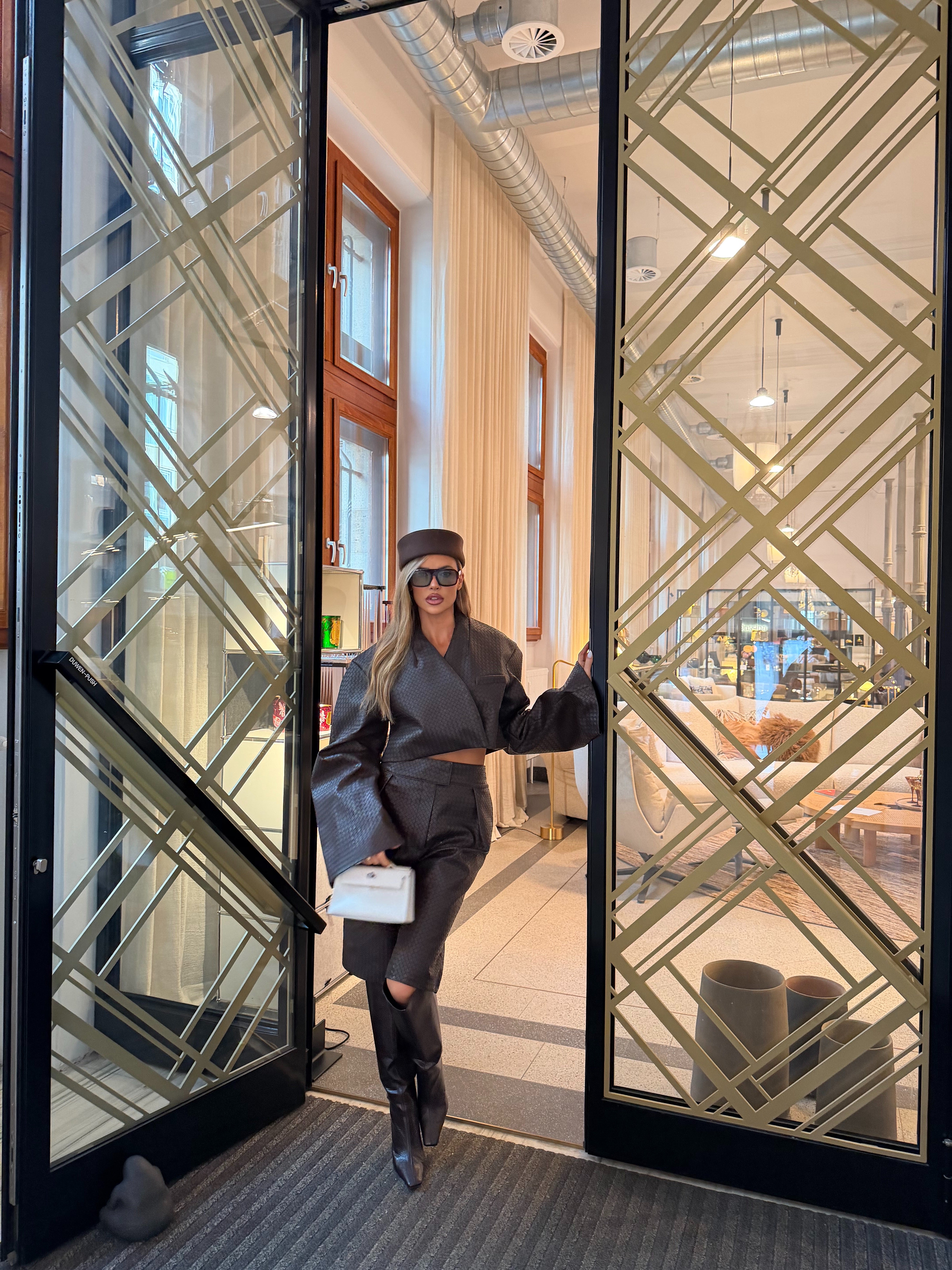 Sofia Bermuda Trousers made from Faux knitted leather.